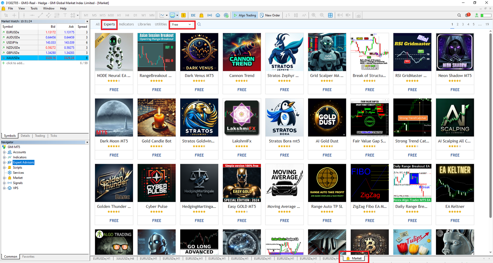 จากนั้นไปที่ Market ในแทบด้านล่างของ MT4/MT5